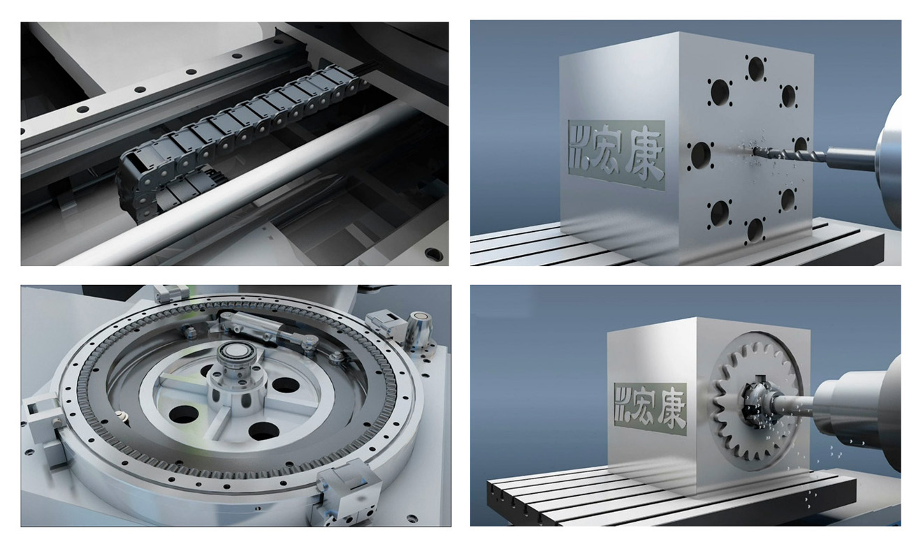 2、超短圓柱滾動回轉(zhuǎn)工作臺專利(專利號:ZL 2010 1 0281167.1)技術(shù),使工作臺支撐能力和可靠性顯著提高。3、各坐標(biāo)軸伺服進給裝置全部采用交流伺服電機驅(qū)動、應(yīng)用預(yù)緊式滾珠絲杠、專用角接觸成組軸承支撐;4、上滑座、立柱采用直線導(dǎo)軌結(jié)構(gòu),精度高,便于安裝調(diào)試。5、主軸箱采用氮氣平衡系統(tǒng),更加穩(wěn)定、可靠、安全。6、拖鏈內(nèi)置技術(shù),有效保護管路運行系統(tǒng)、減少故障率,提高整體美觀度。